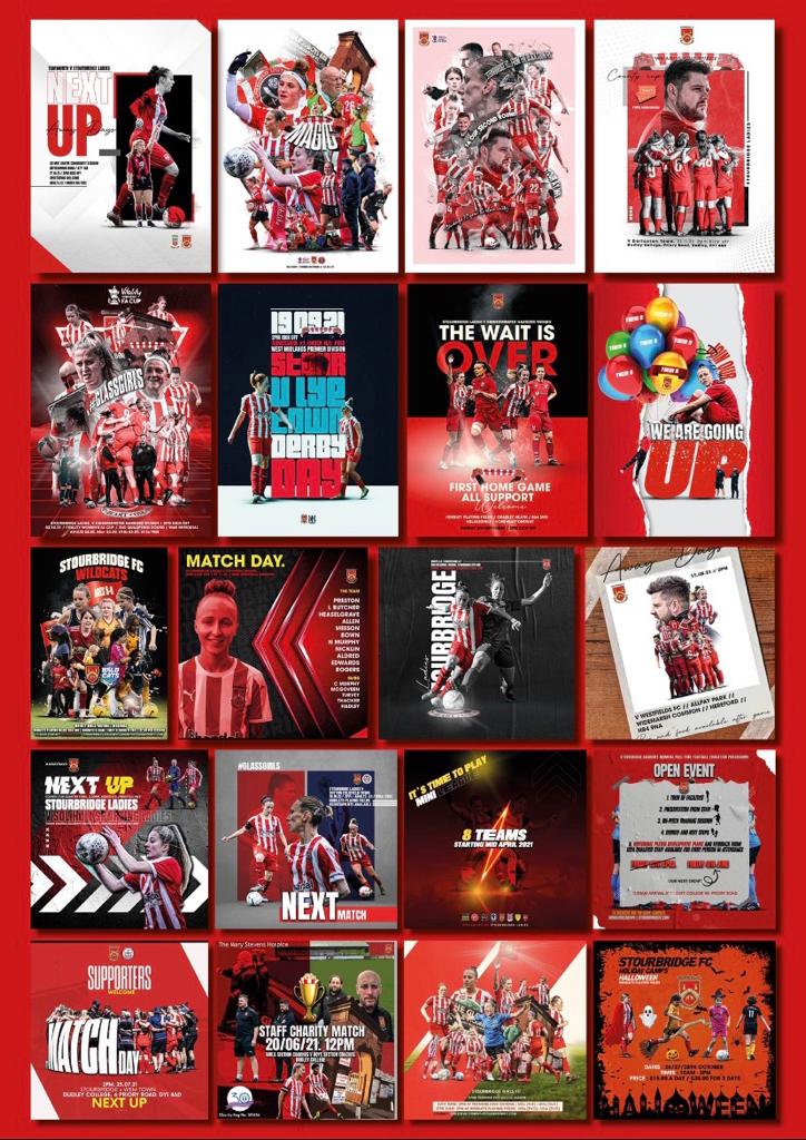 These types of work include: match-day programmes, calendars, books, social media posters and more.